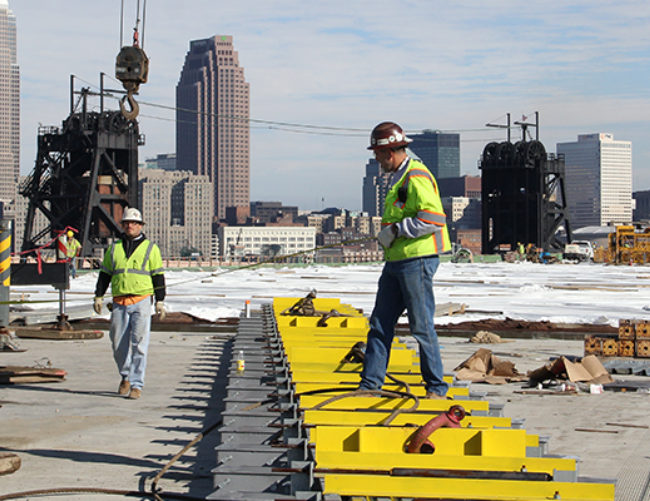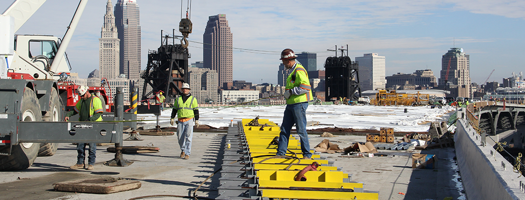 Recognized as a vital transportation route for downtown Cleveland, Ohio, the westbound George V. Voinovich Bridge was built using the exclusive Design Build Process. This innovative bridge on the I-90/Innerbelt Freeway was conceived to replace the aging Innerbelt Bridge, built in 1959.
